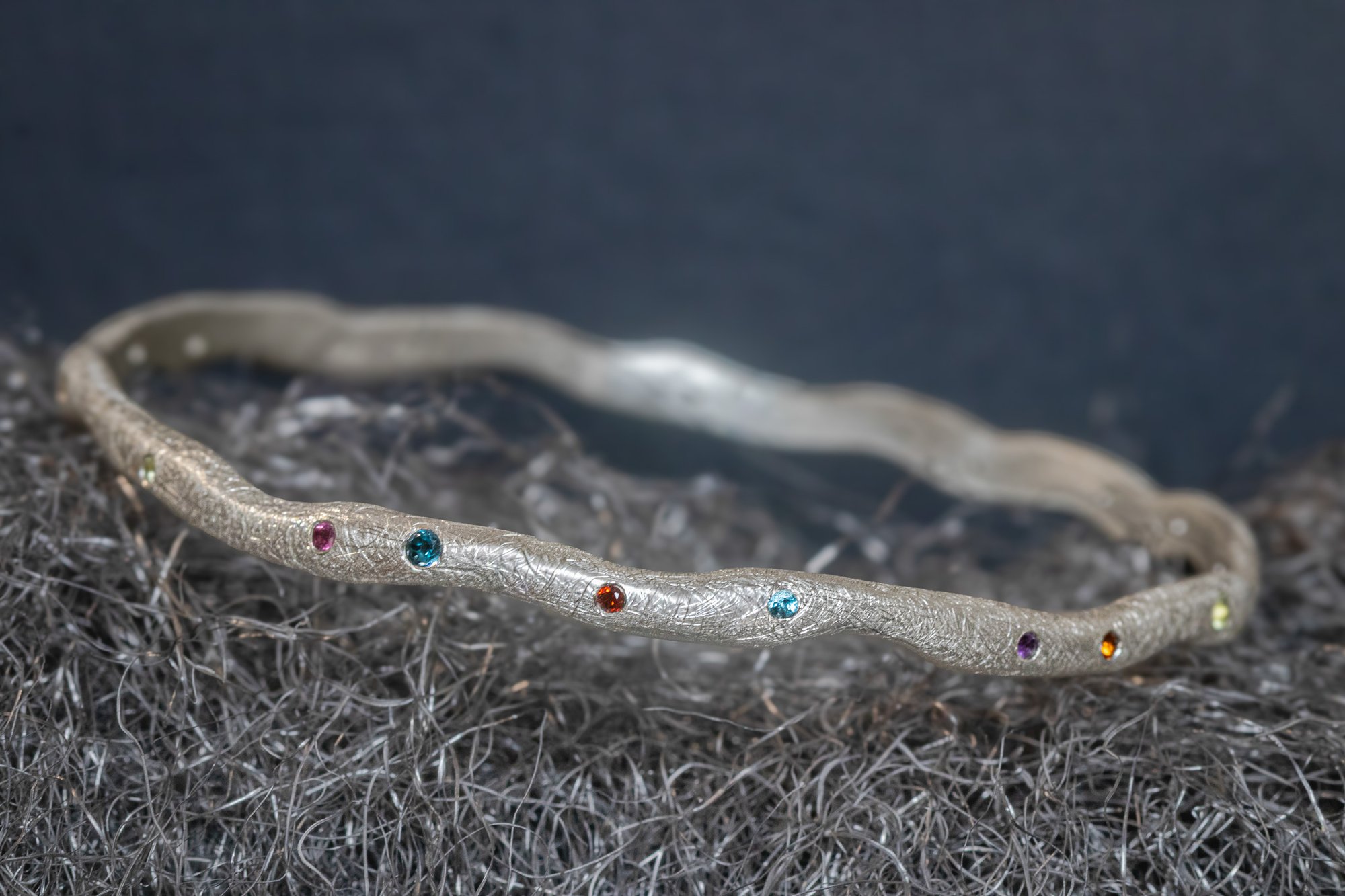 'gemstone wobble' - Recycled silver bangle with gemstone