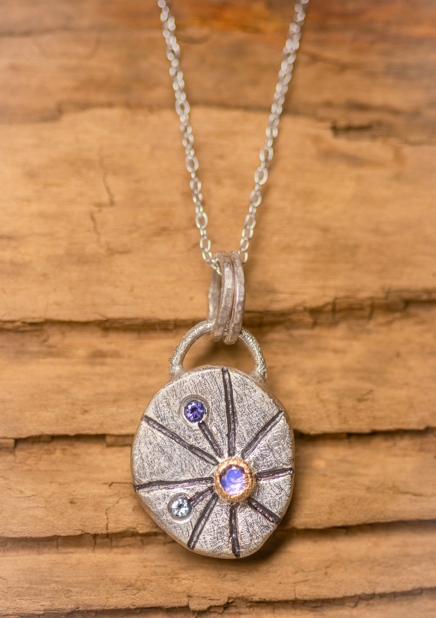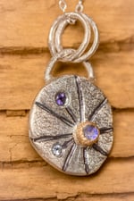 Recycled silver and 9ct pendant with Moonstone, Aquamarine and Iolite