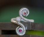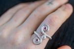 'Shintangle' Recycled silver, spiral ring with garnet, sapphire and cubic zirconia